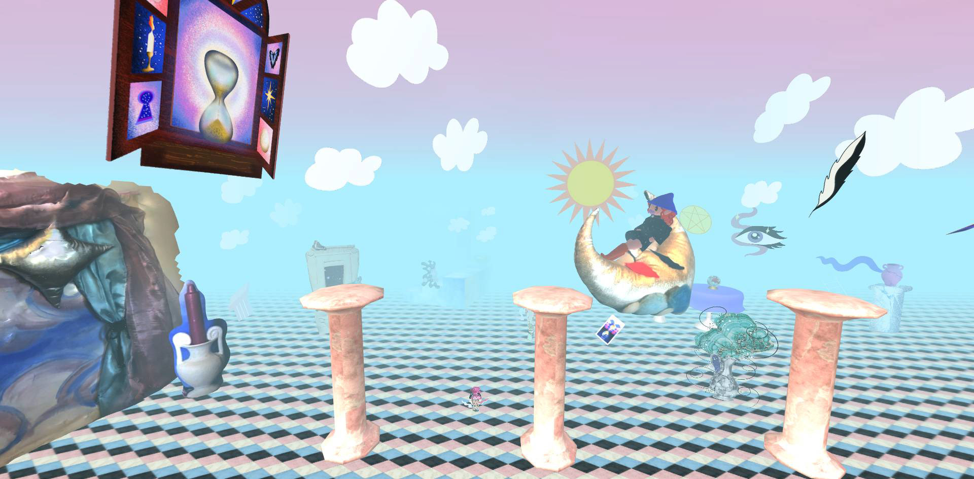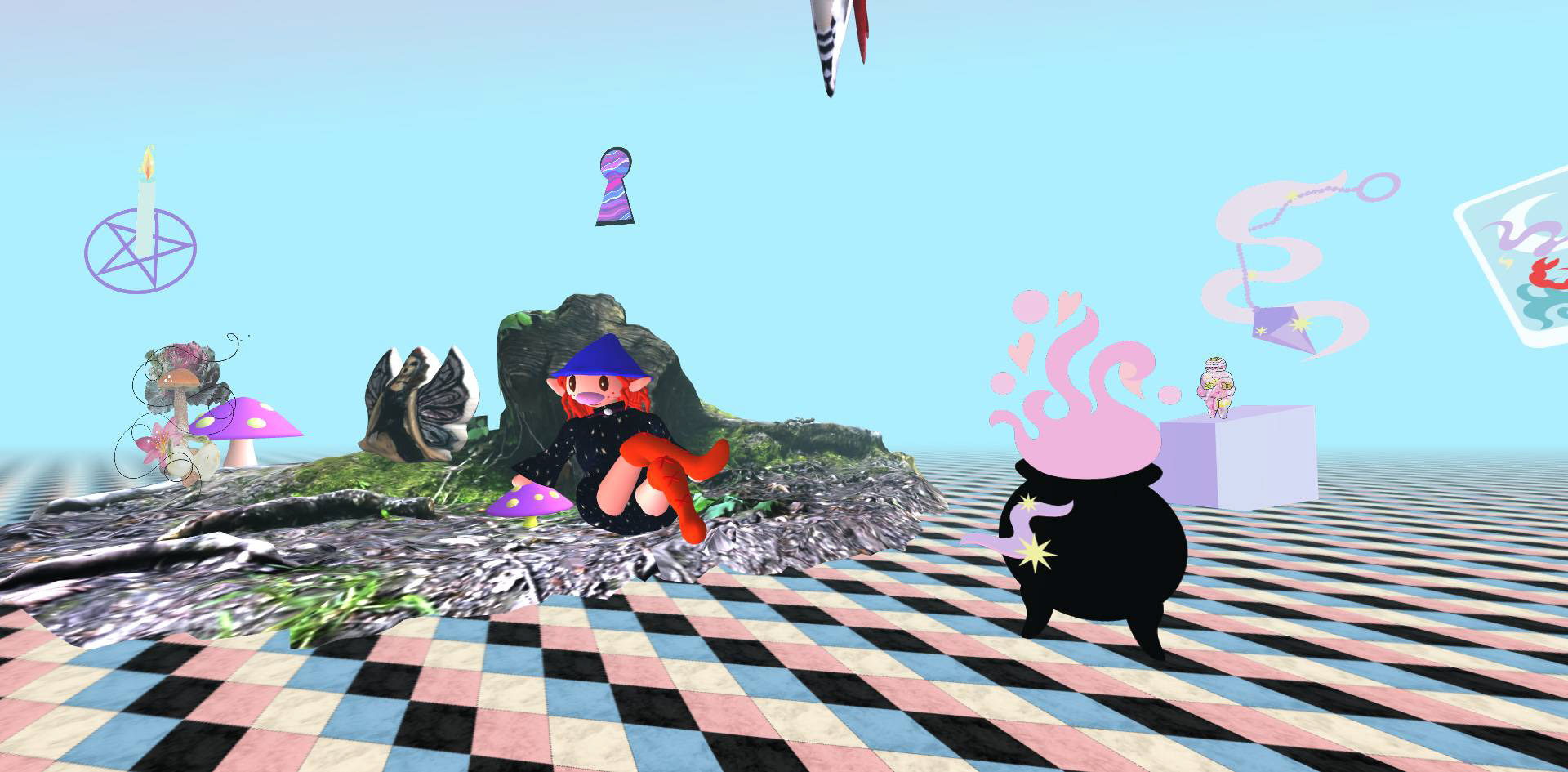 Xenia, created with New Art Cities, is a place of healing and creativity. It is the digital expression of the zone that I tap into in my spiritual practice. Using 2d art, 3d scans, video rituals, recorded tarot readings and the sounds of my singing bowls, I built an immersive environment that reflects who I am as a practitioner.